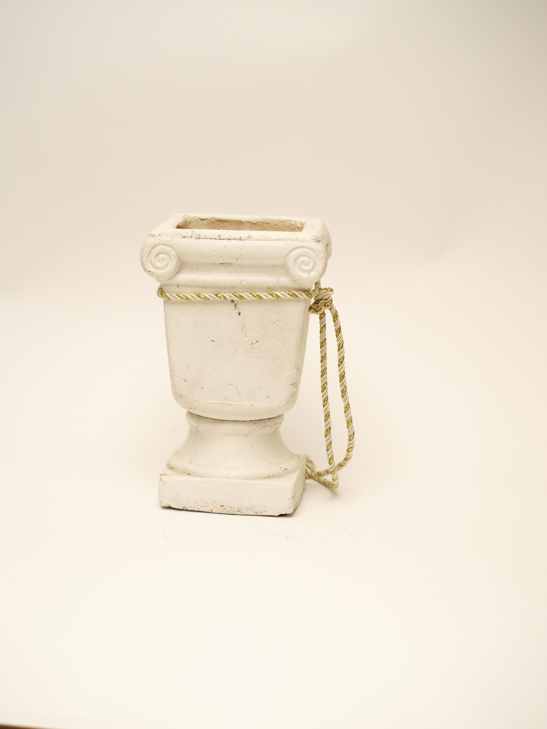 Antīka tipa balts keramisks puķu pods ar zelta auklu (aukla noņemama). L izmēra.