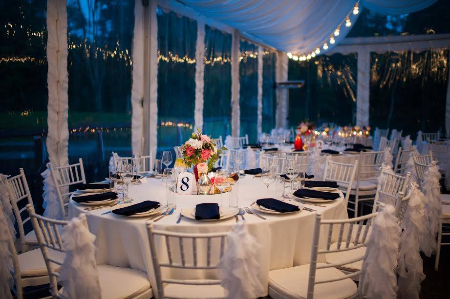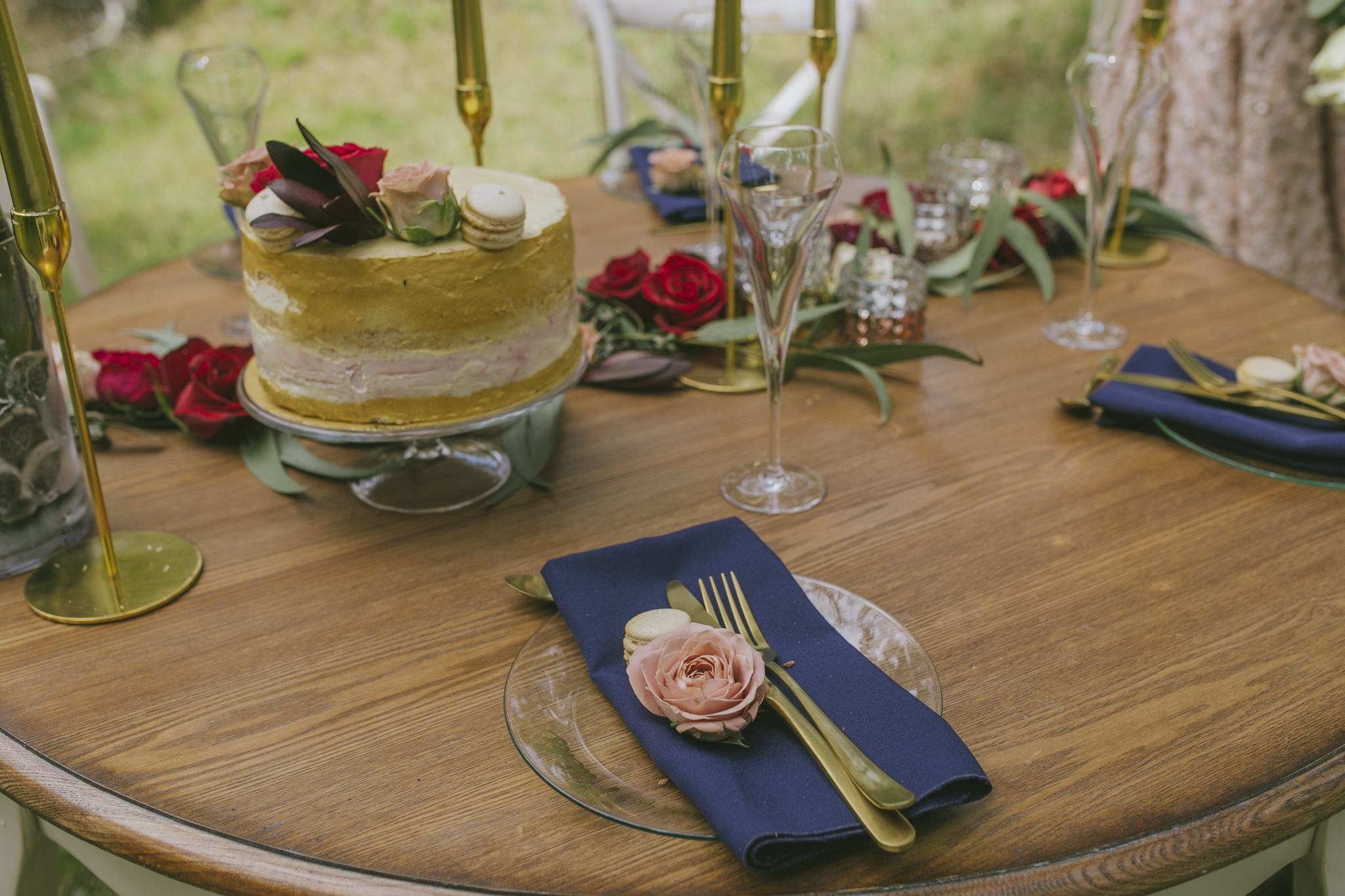 Tumši zilas auduma salvetes.