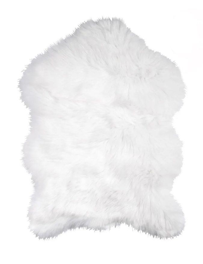 Balti, pūkaini dekoratīvi paklāji no akrila/poliestera materiāla.