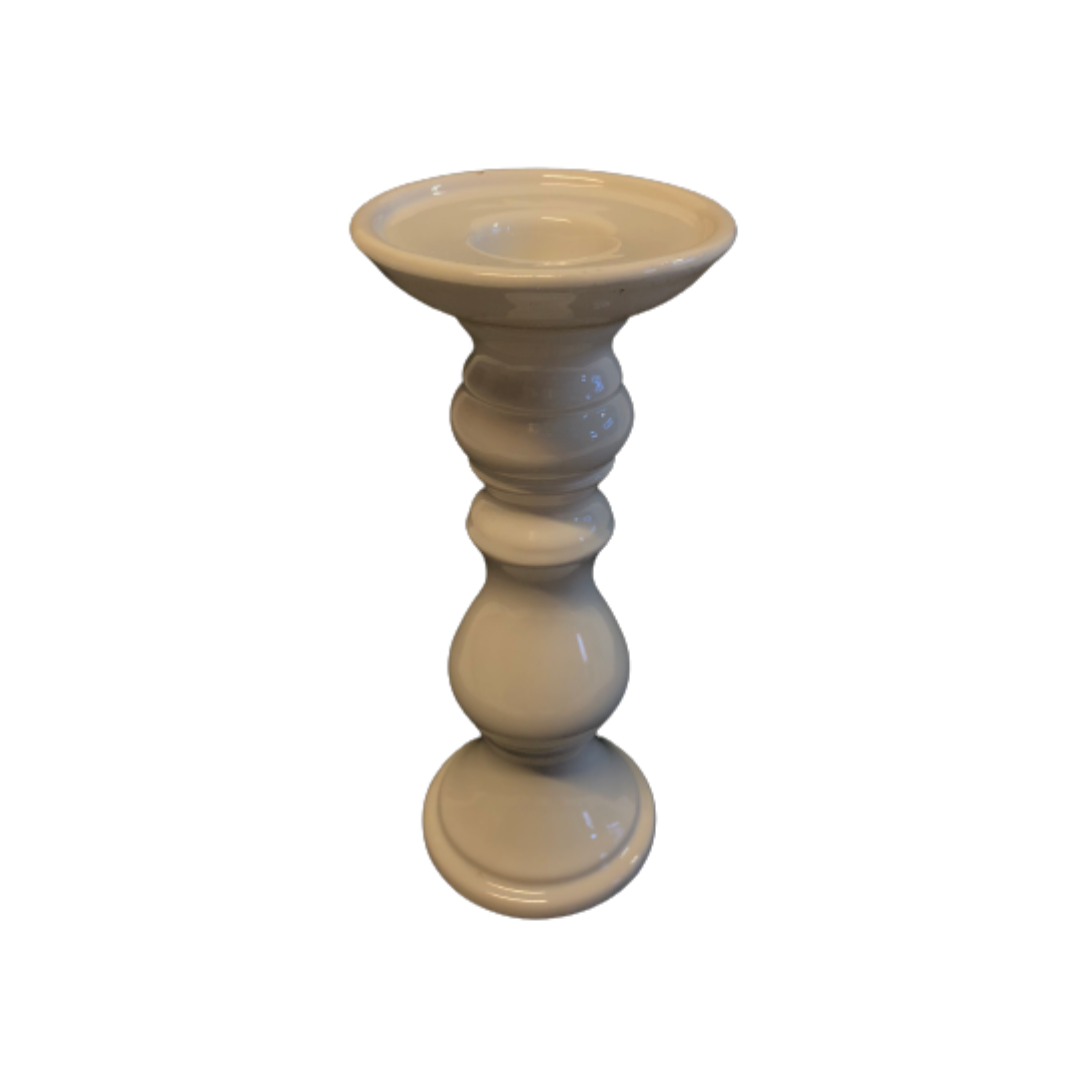 Balti keramikas svečturi gan garajām, gan cilindra veida svecēm.