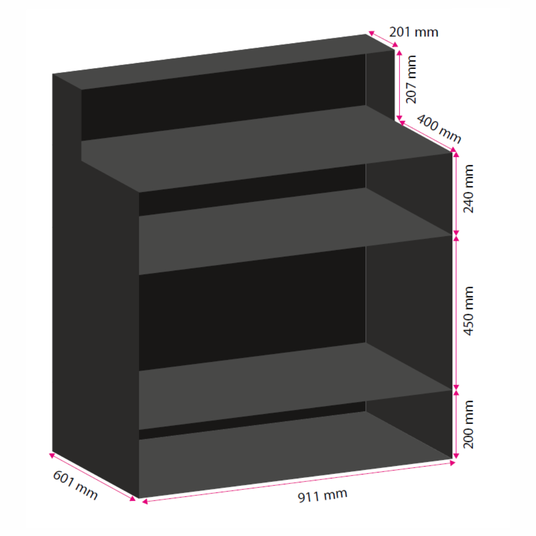 Izmērs: augstums – 1097 mm, platums – 911 mm, dziļums – 601 mm.