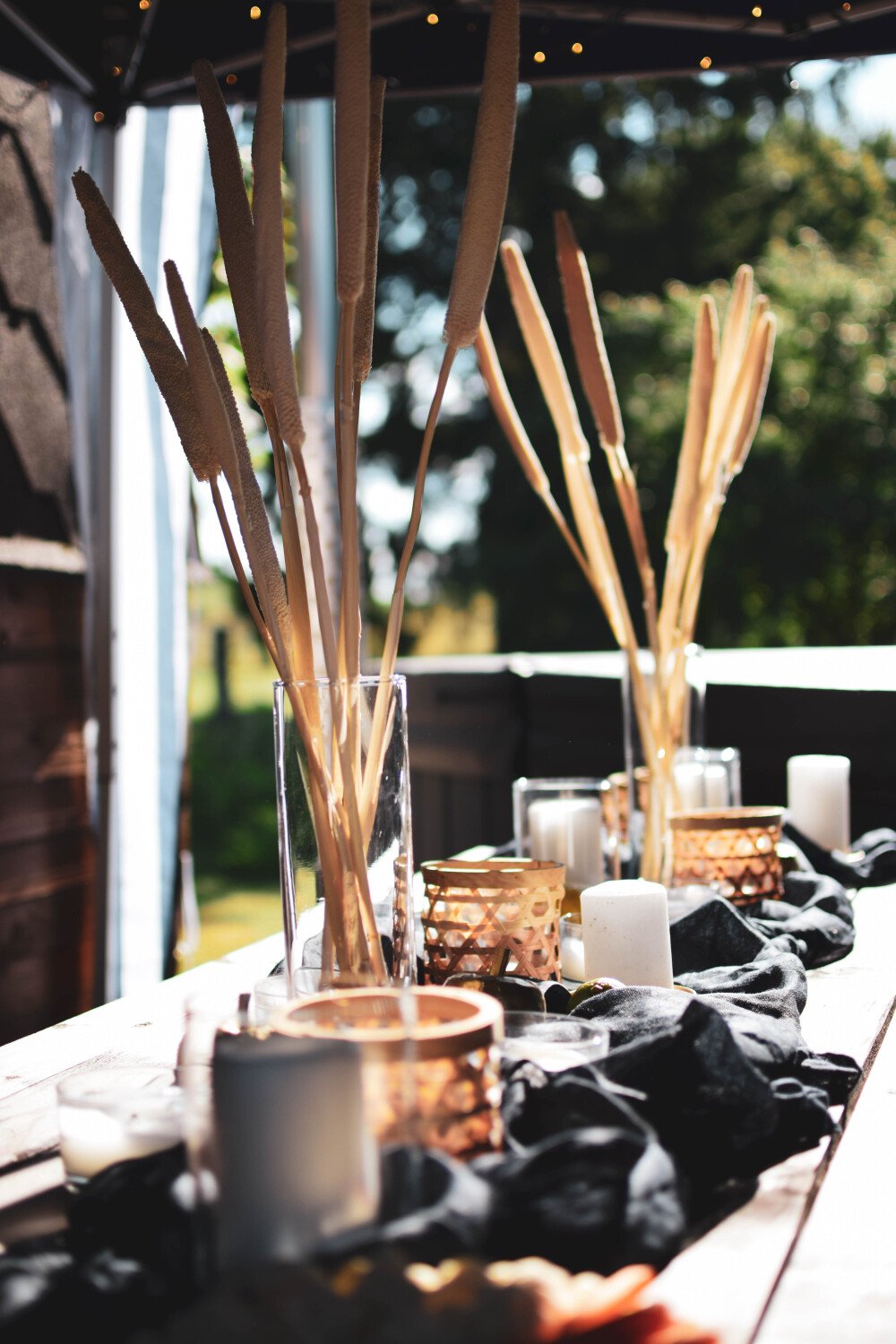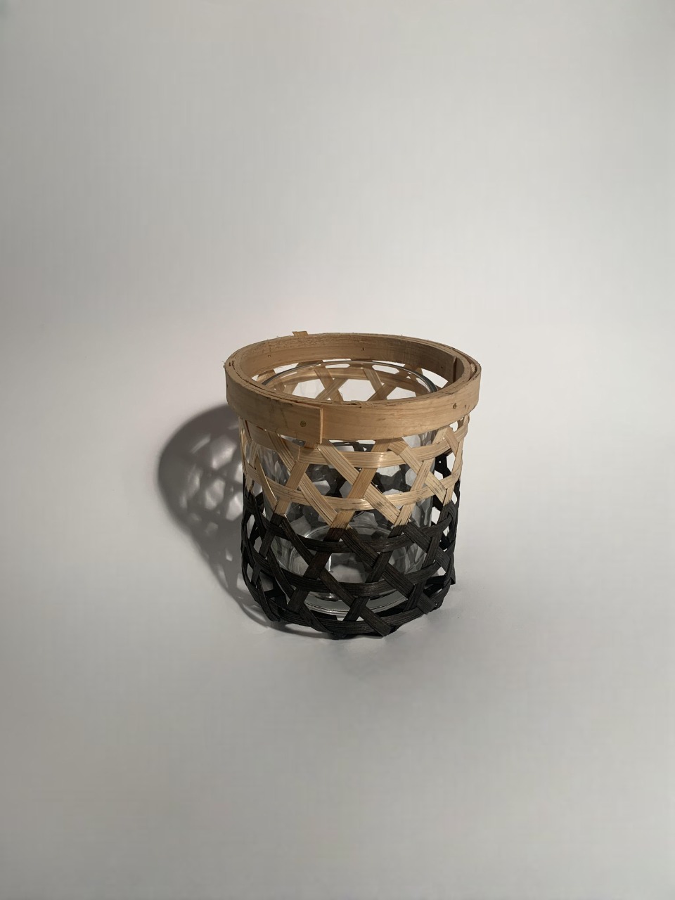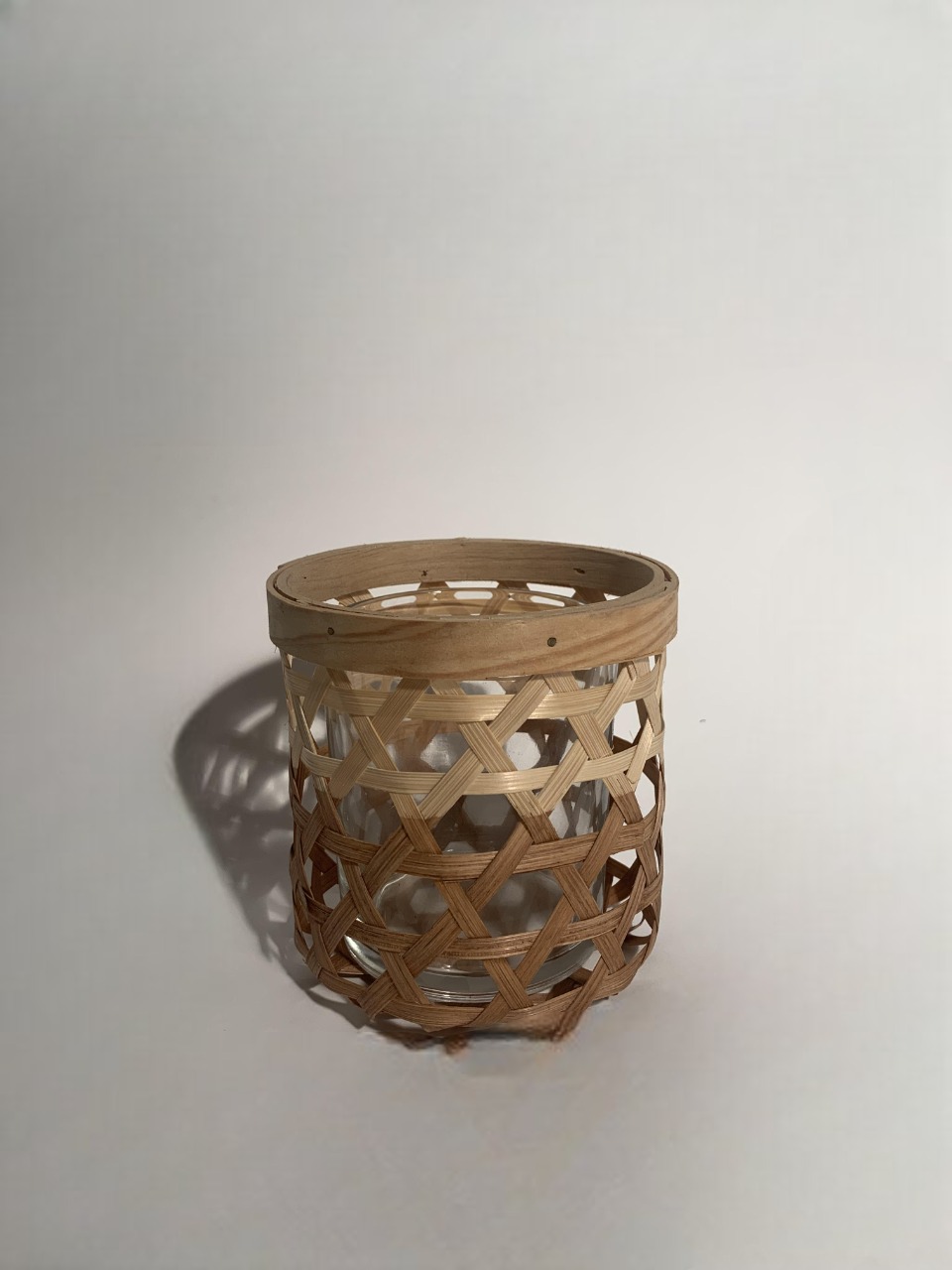Pīts svečturis ar stikla trauku iekšpusē, kur ievietot sveci.