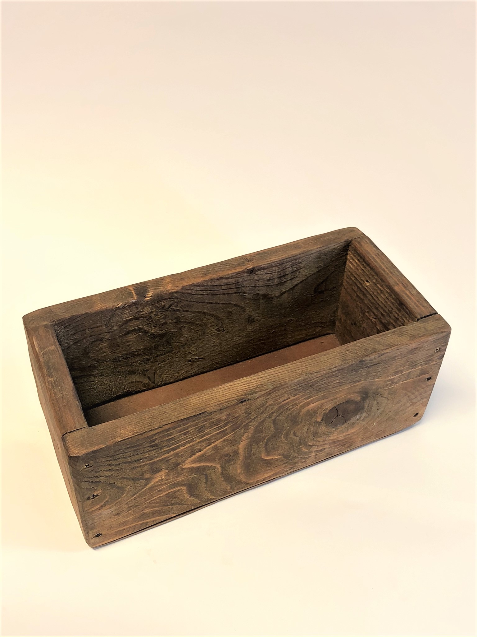 Tumši brūna koka kaste.
