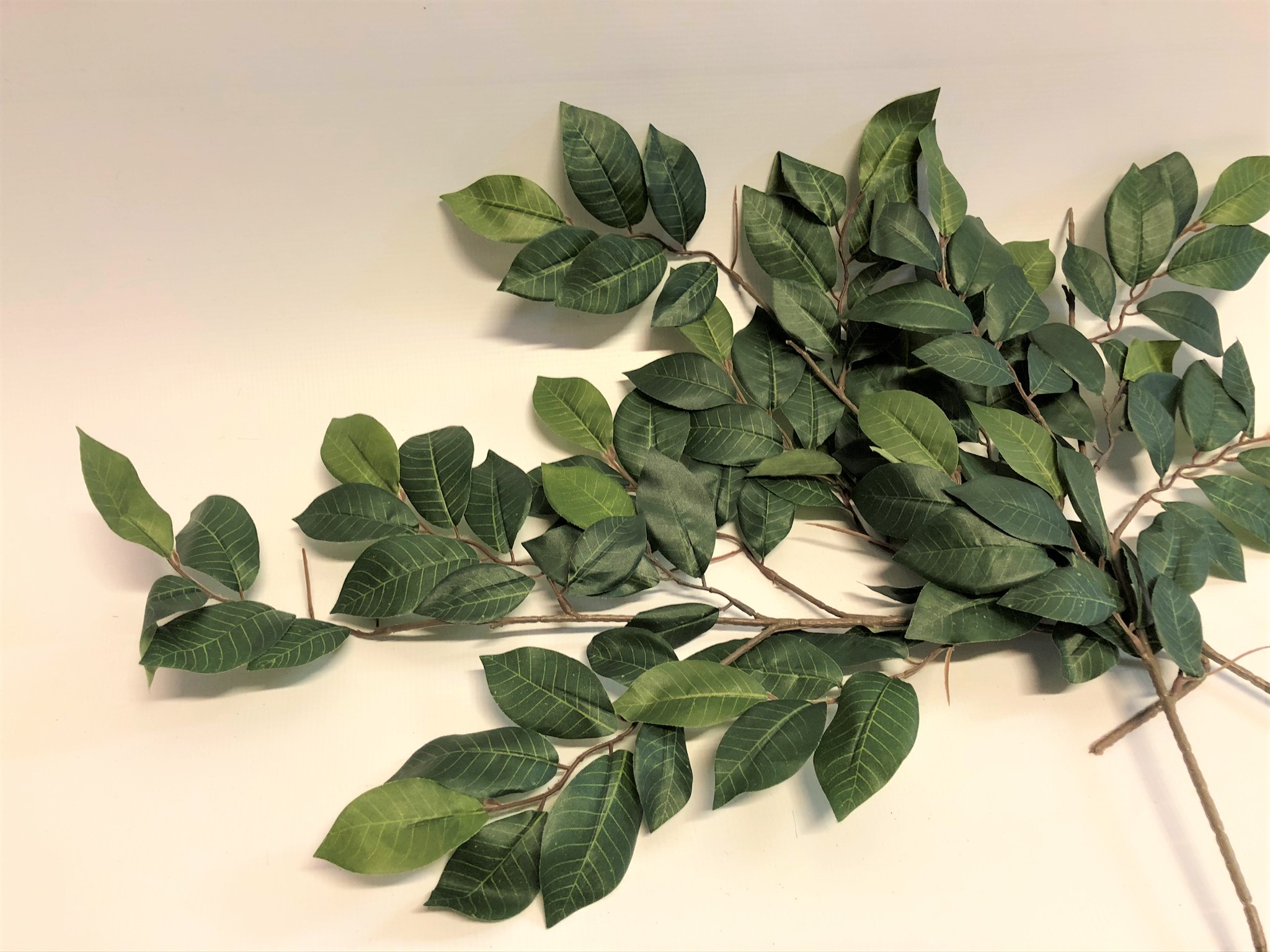 Mākslīgs, dekoratīvs fikusa zars zaļā krāsā.