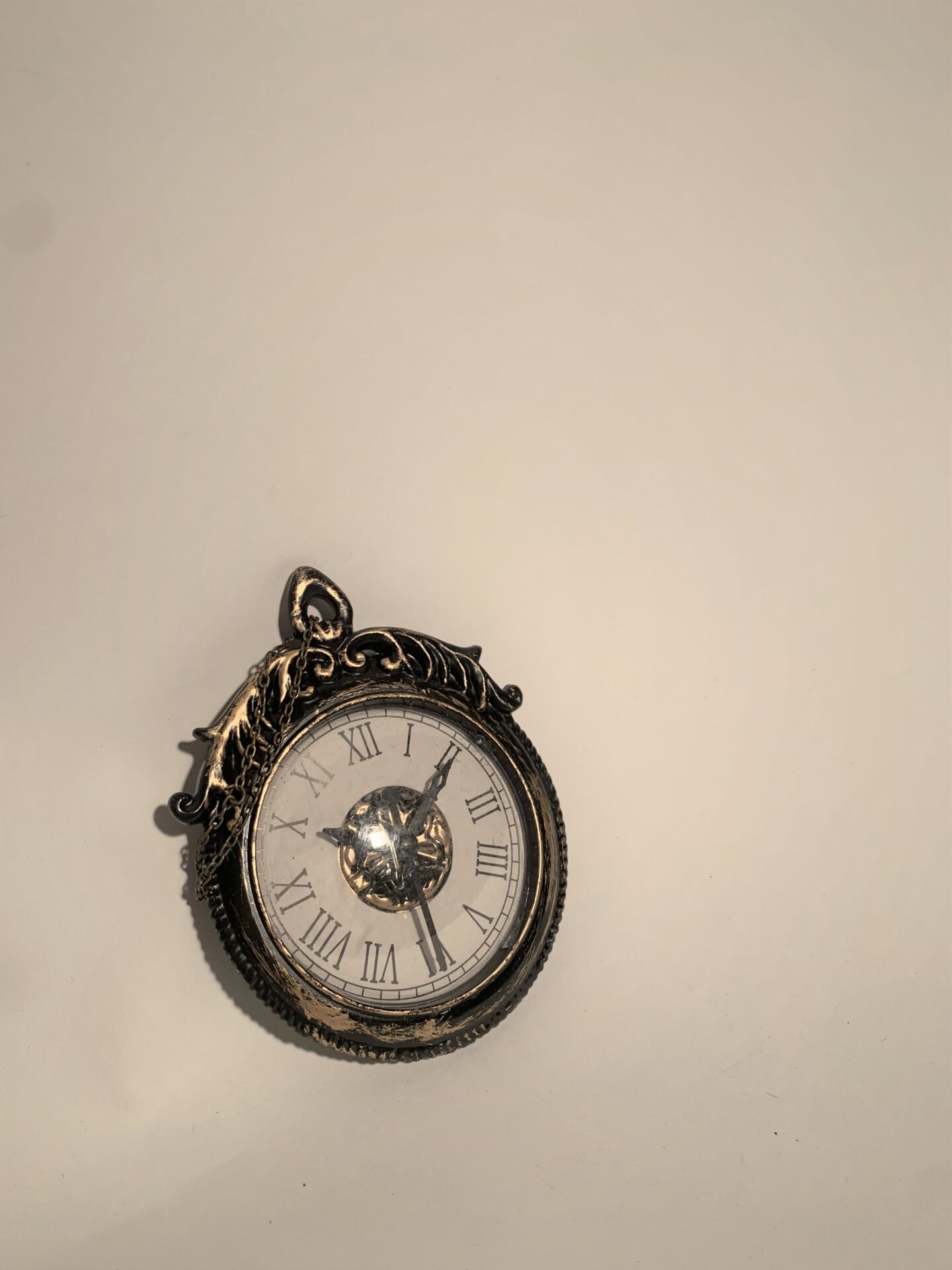 Dekoratīvs pulkstenis ar greznu rāmi.