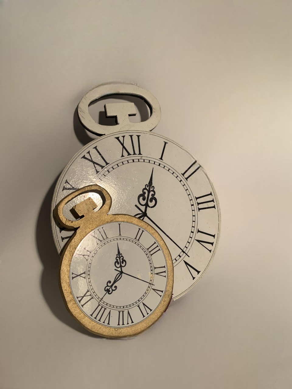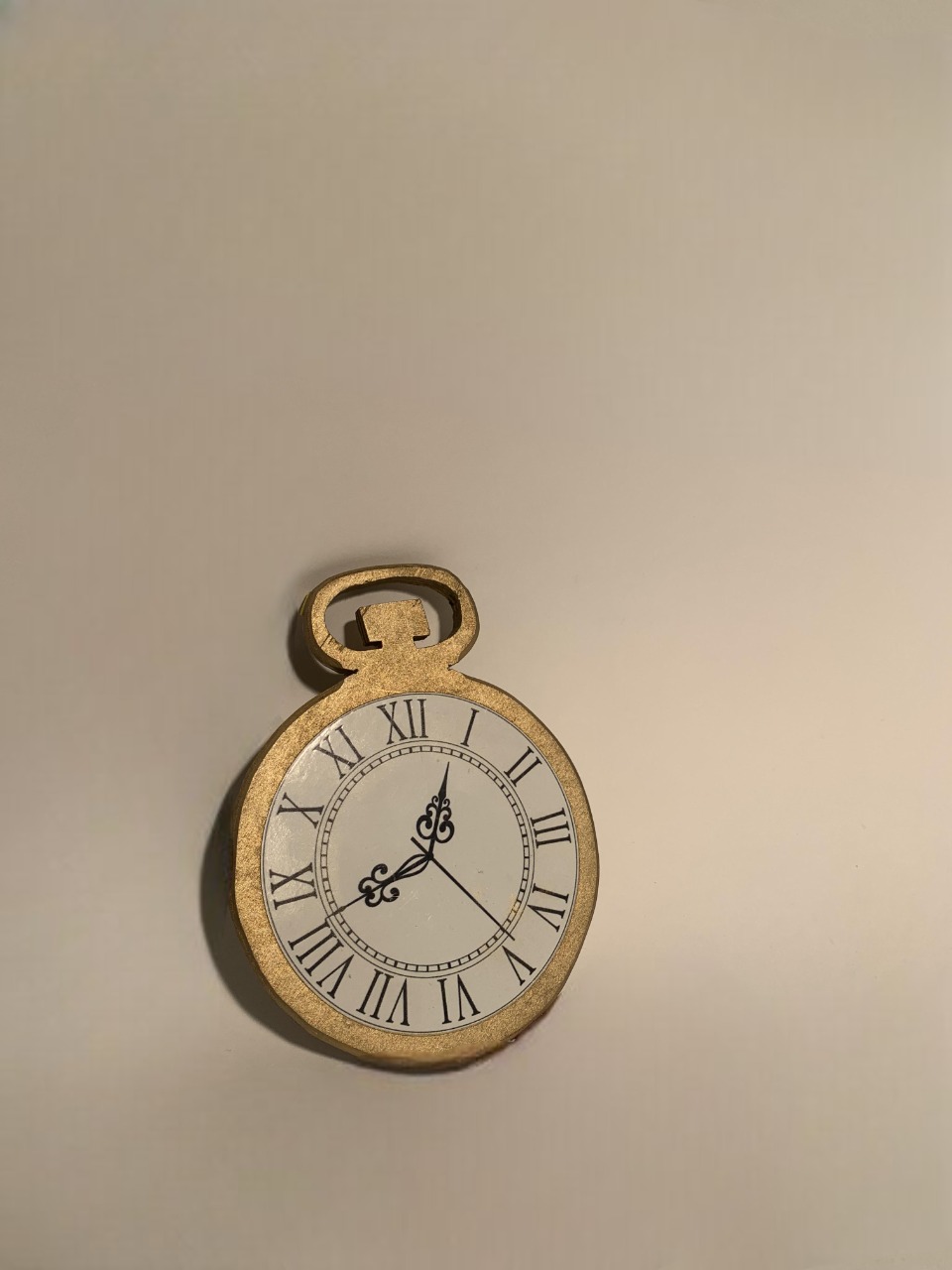 No finiera veidots pulkstenis, kas pārklāts ar uzlīmi.
