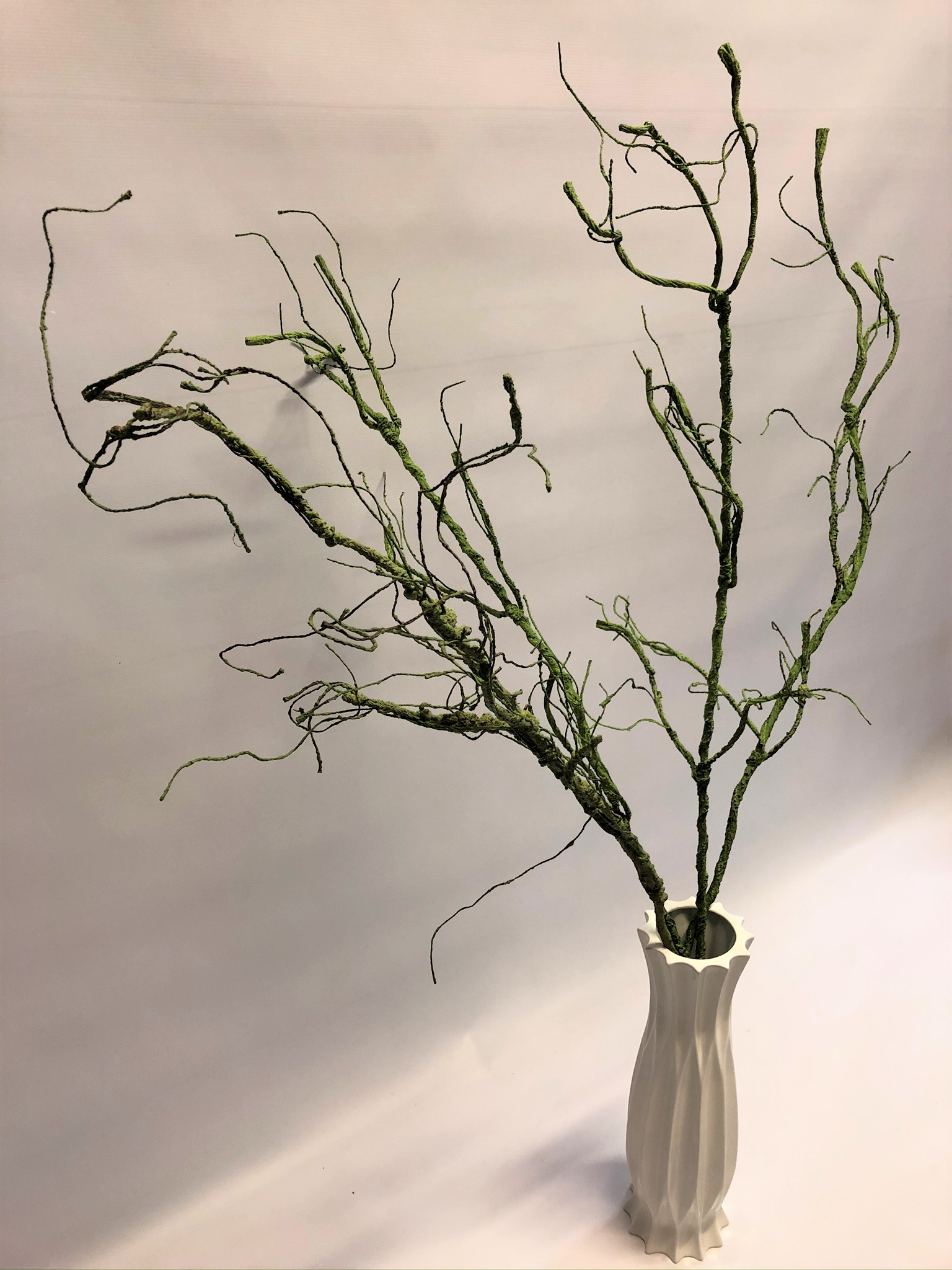 Dekoratīvs mākslīgais zars zaļā krāsā.