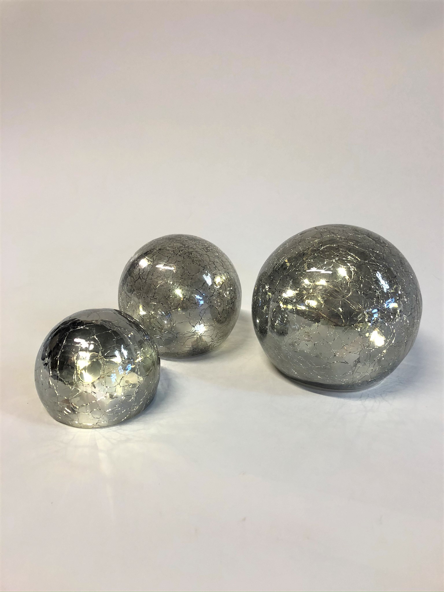 Dekoratīvu LED bumbu komplekts ar siltu gaismu. Komplektā ietilpst 3 dažāda izmēra bumbas. Katra bumba darbojas ar 3 x AAA izmēra baterijām.