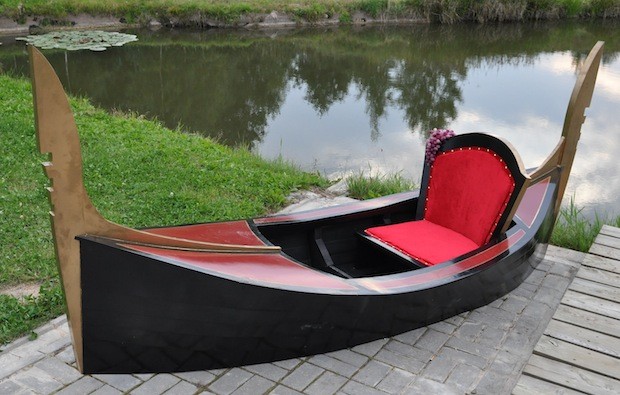 Butaforiska gondola – venēciešu laiva, kur iespējams iesēsties 2 pers. Komplektā klāt tiek pievienots 1 gab. airis.