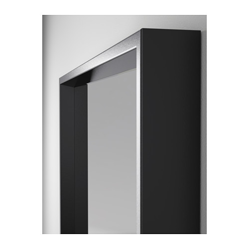 Kantains stikla spogulis ar melnu rāmi, ko var piekārt pie sienas.