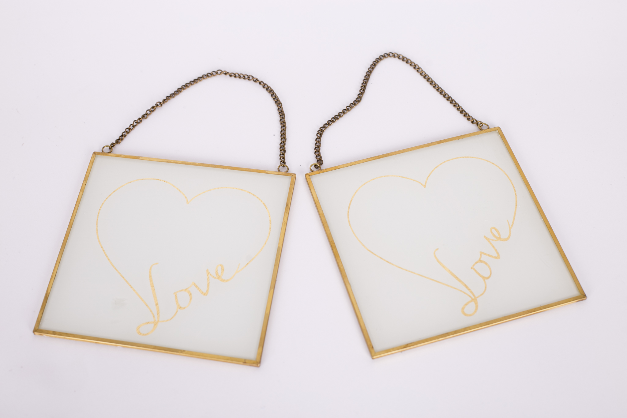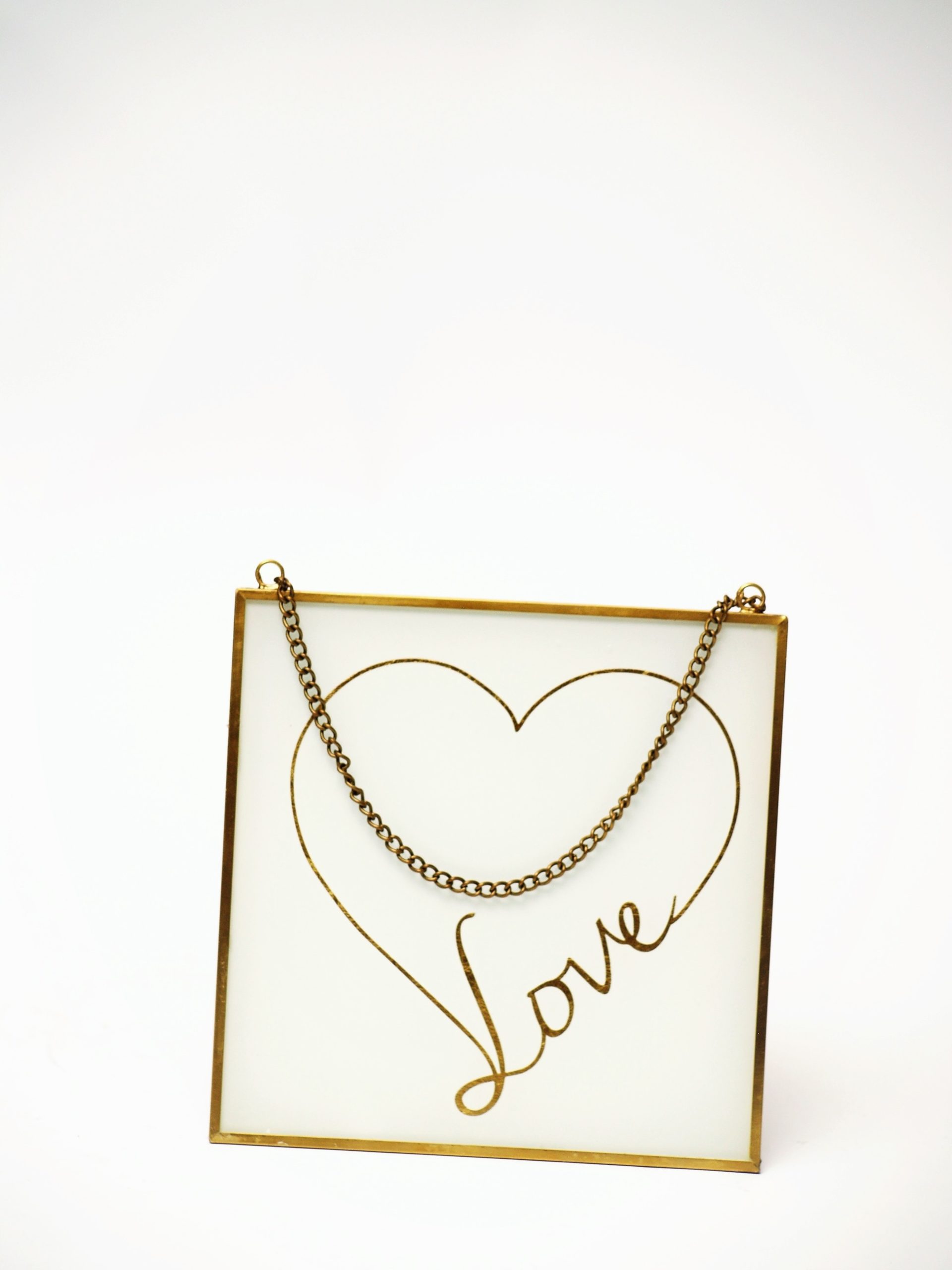 Zelta karinām dekors ar uzrakstu “LOVE”.