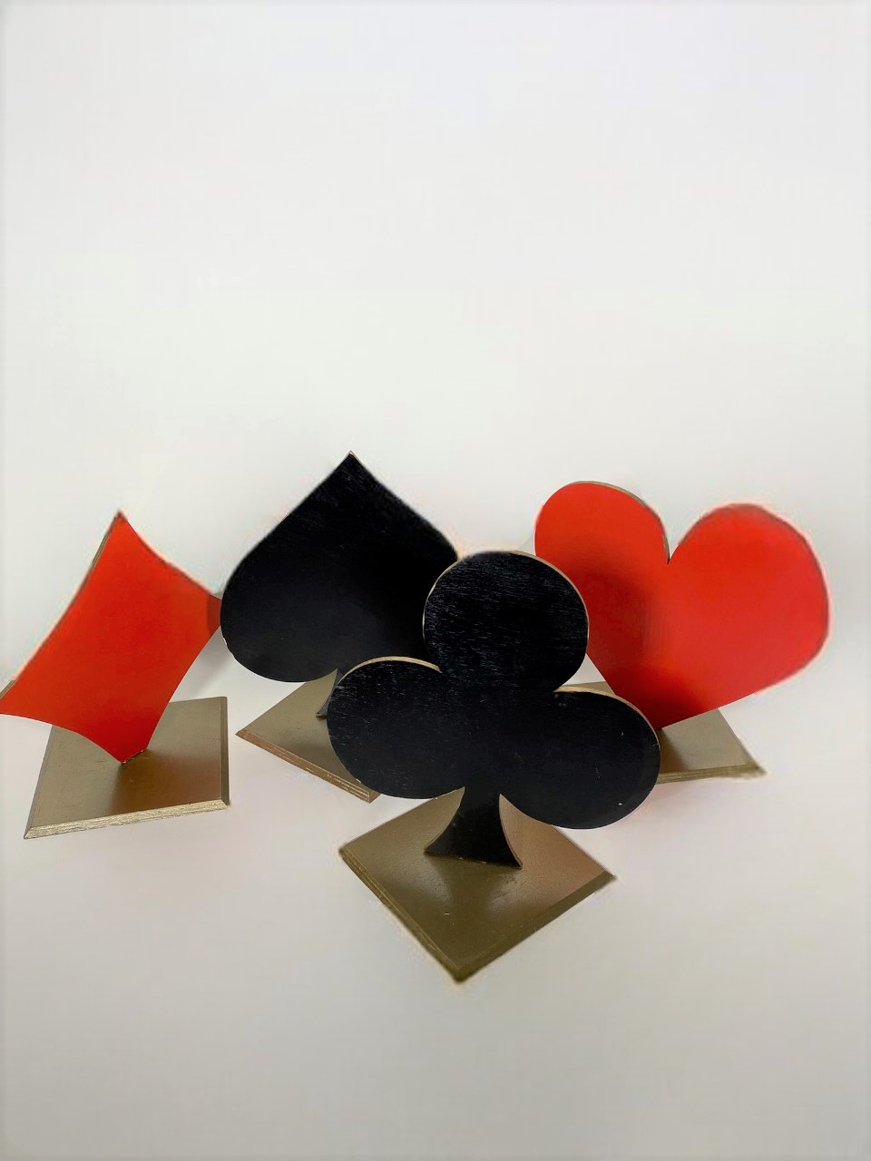 Galda dekori – kāršu zīmes (ercs, pīķis, kāravs un kreicis), kas izgatavoti no izturīga materiāla un viegli komplektējami.