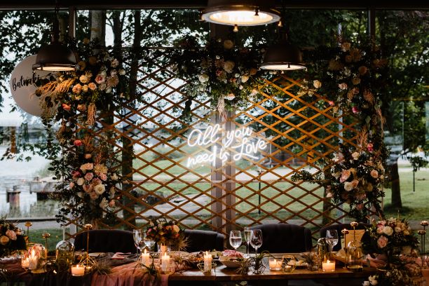 Izstiepjams koka režģis/siena, ko var skaisti izdekorēt ar ziediem vai citiem materiāliem. Var regulēt augstumu un platumu. Režģim aizmugurē ir balts metāla rāmis, kas veido stabilitāti uz zemes.