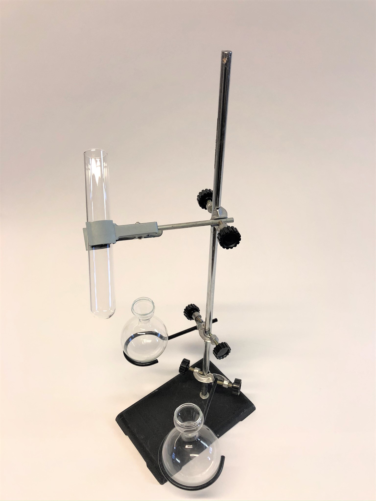 Laboratorijas metāla statīvs, kur var ievietot mēģenes, mazas kolbas u.c. piederumus.