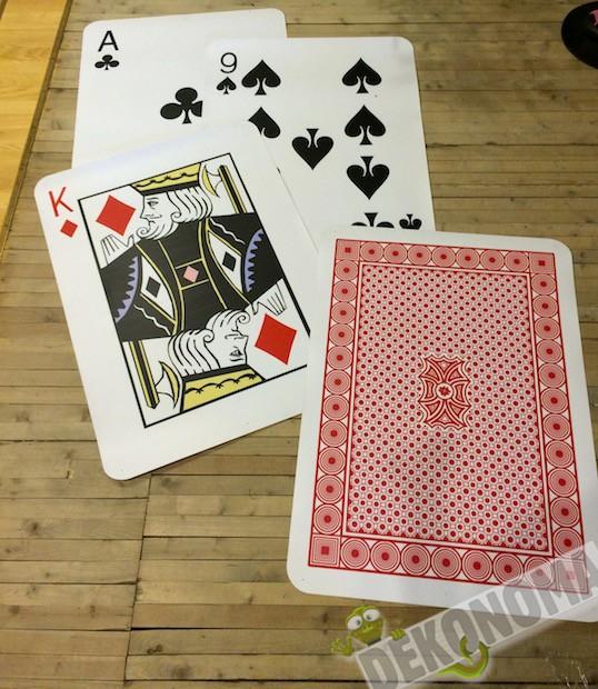 Lielizmēra karināmas kārtis, kas apdrukātas no abām pusēm.