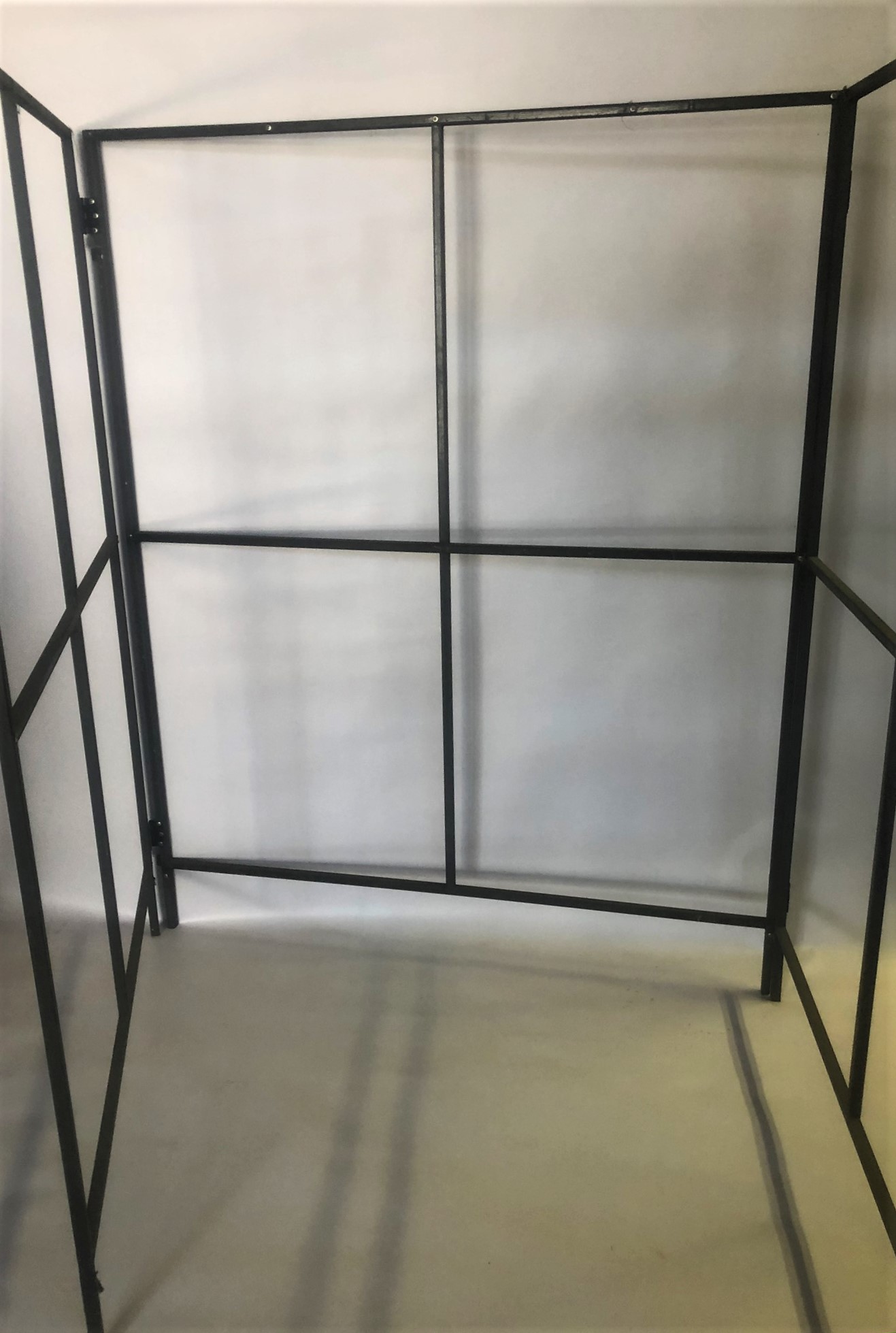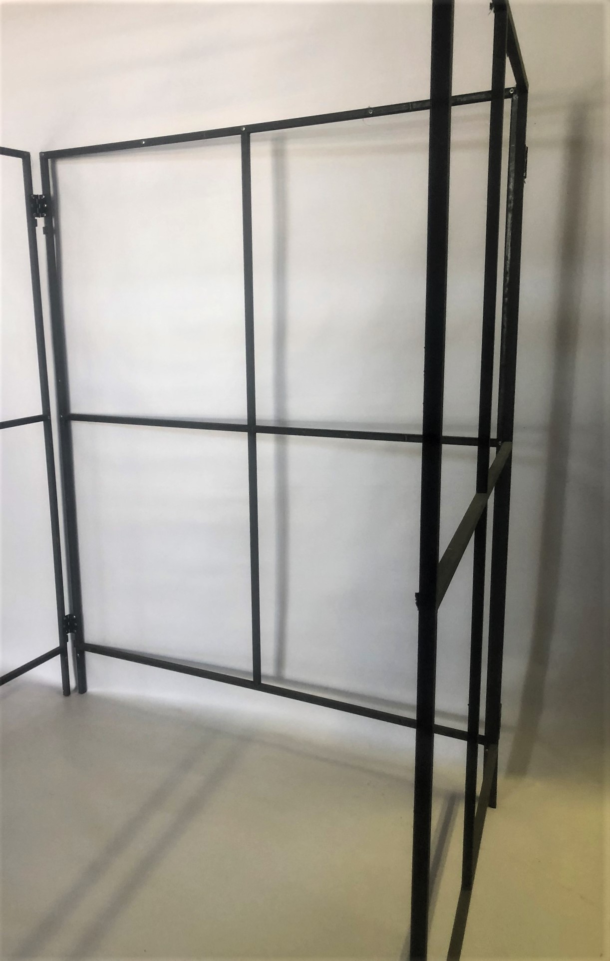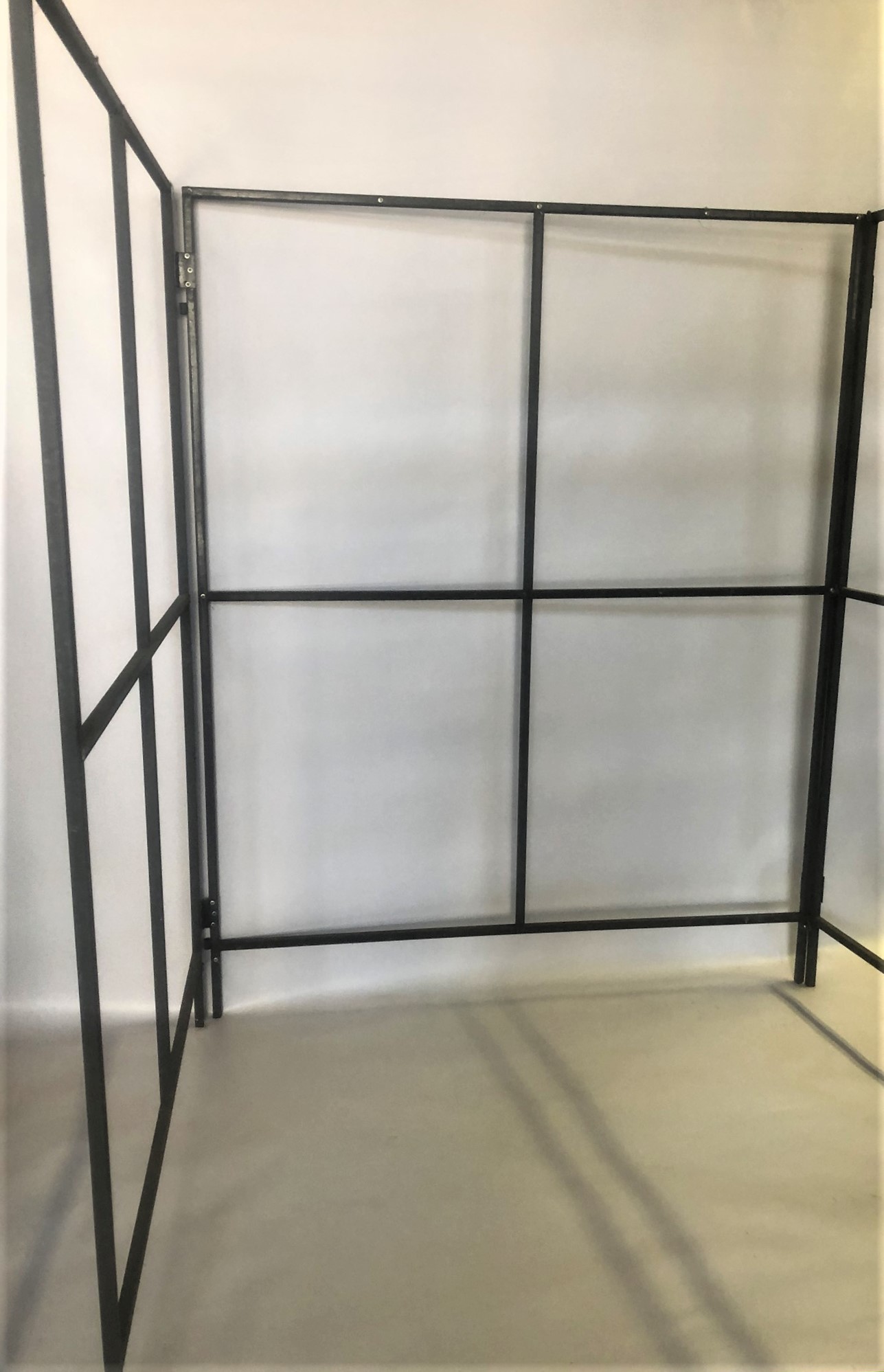 Salokāma metāla konstrukcija melnā krāsā. Konstrukciju var izlocīt arī kā “N” un “Z” burtu.