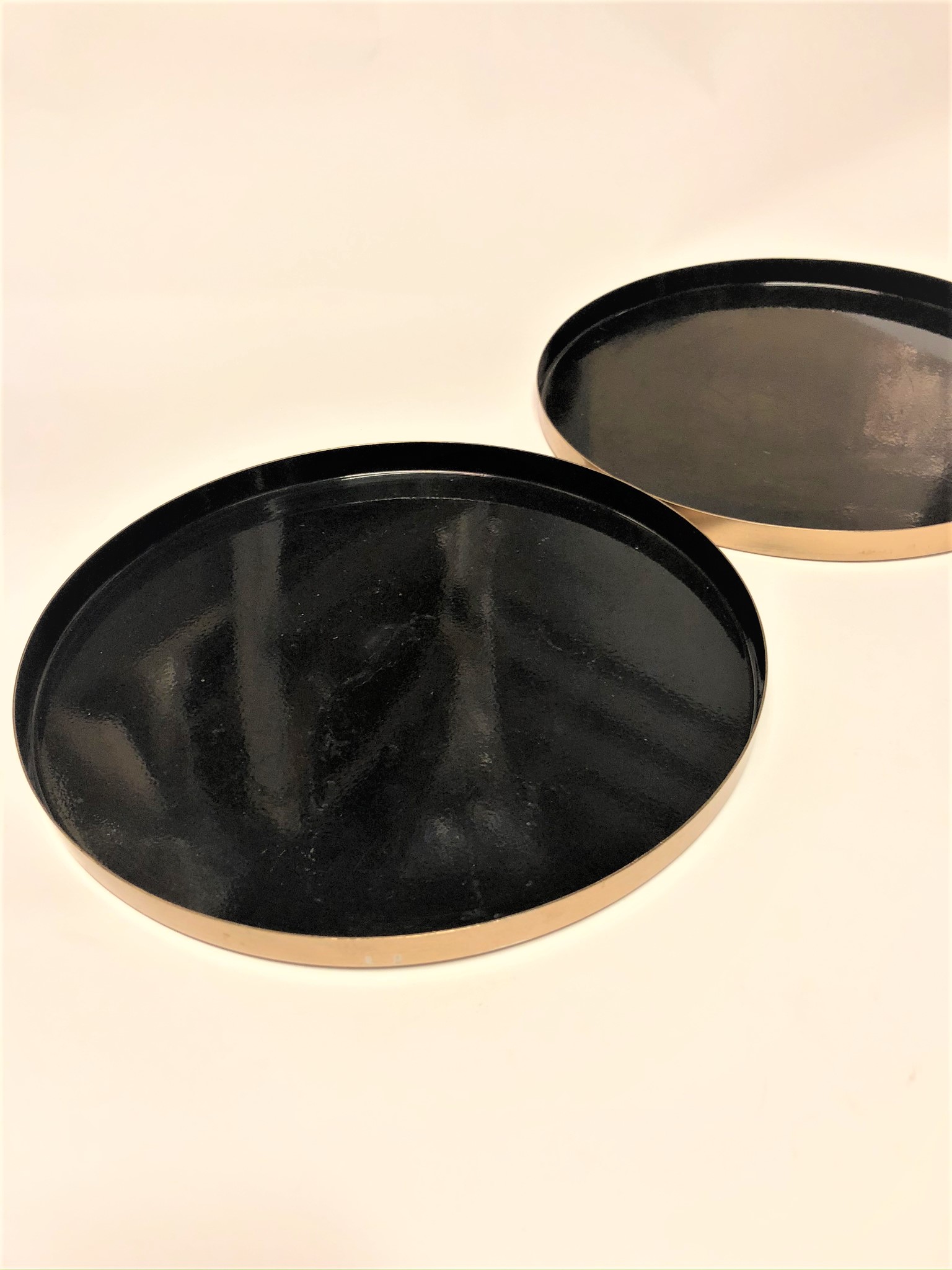 Metāla paplātes iekšpuse ir melnā krāsā, bet ārpuse – zelta.