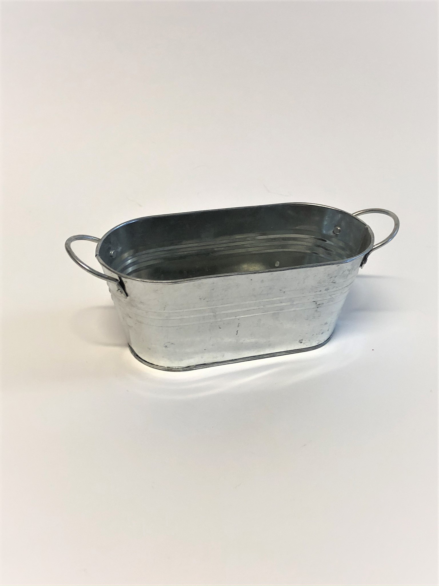 Metālisks trauks/puķu pods ar rokturiem.