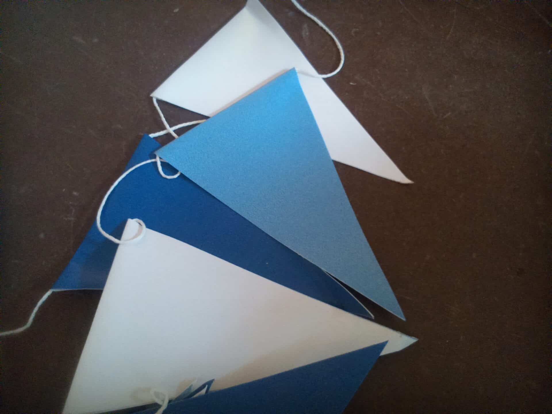 Plastikāta (no banera auduma) karodziņu virtene baltā un zilā krāsā.