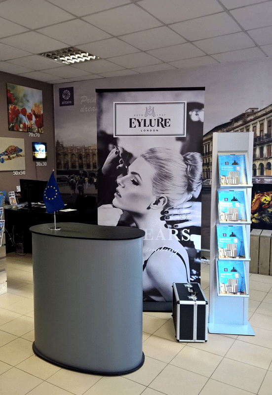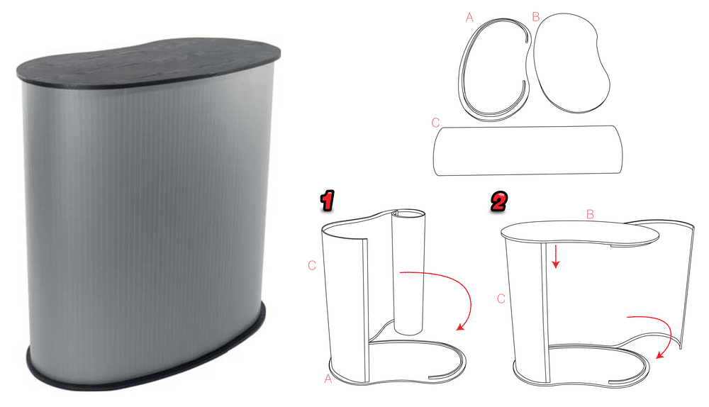 Saliekams prezentācijas galds ar iespēju personalizēt, izgatavojot savu reklāmu.