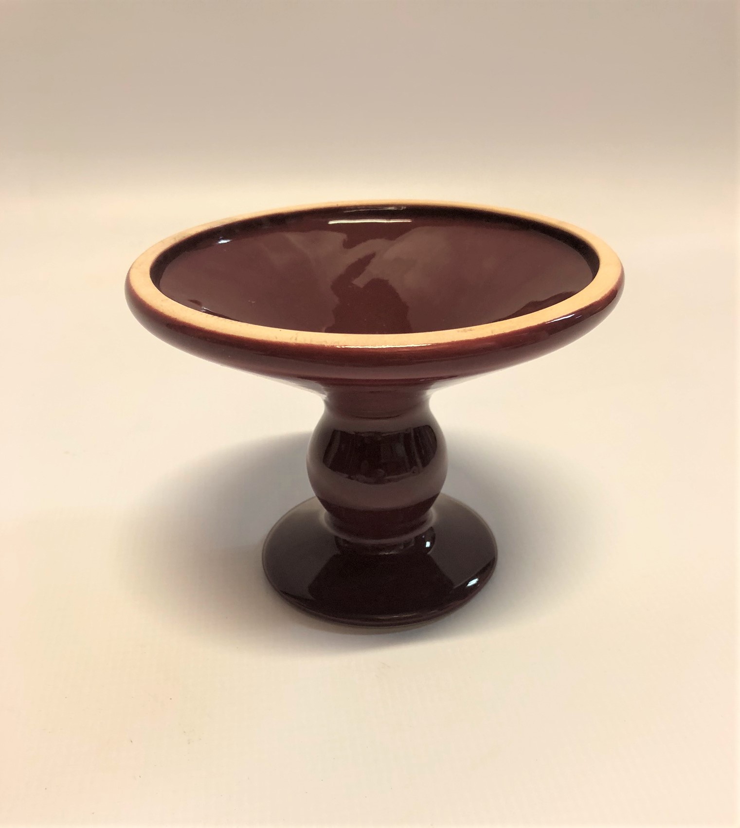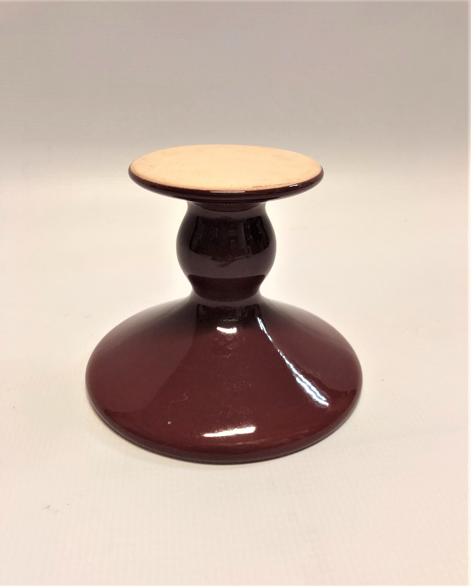 Sarkans keramikas svečturis, ko, apgriežot otrādāk, var izmantot arī kā statīvu ziedu kompozīcijai.