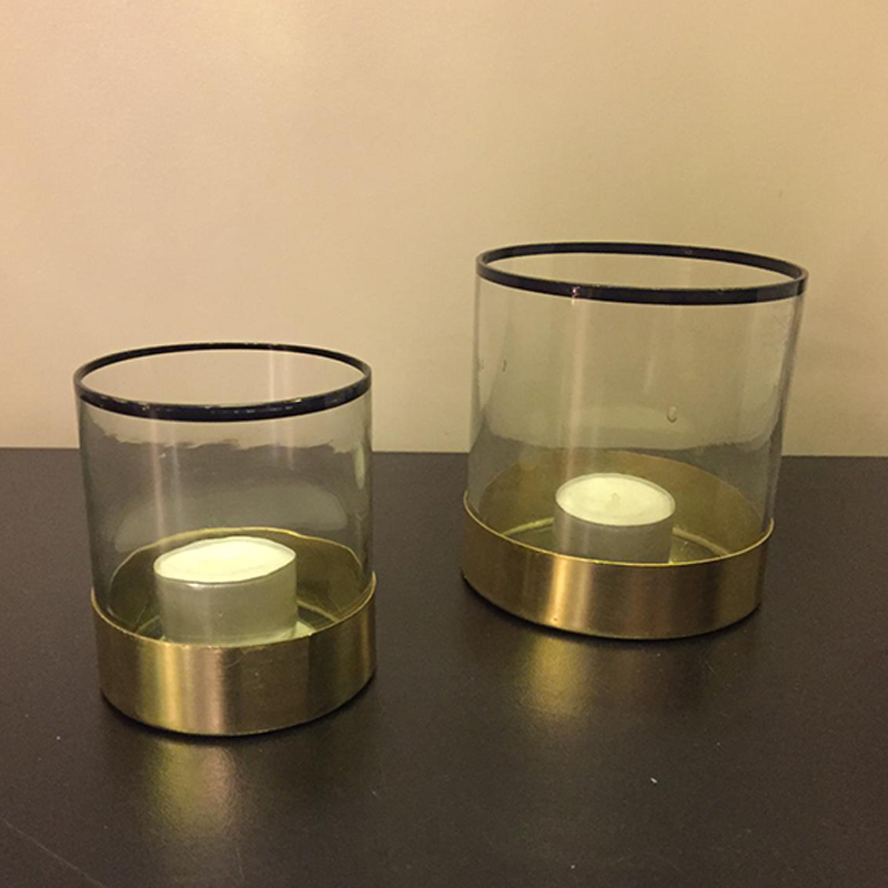 Stikla svečturis ar zeltītu metāla pamatni. Var izmantot gan kā svečturi, gan kā vāzīti.