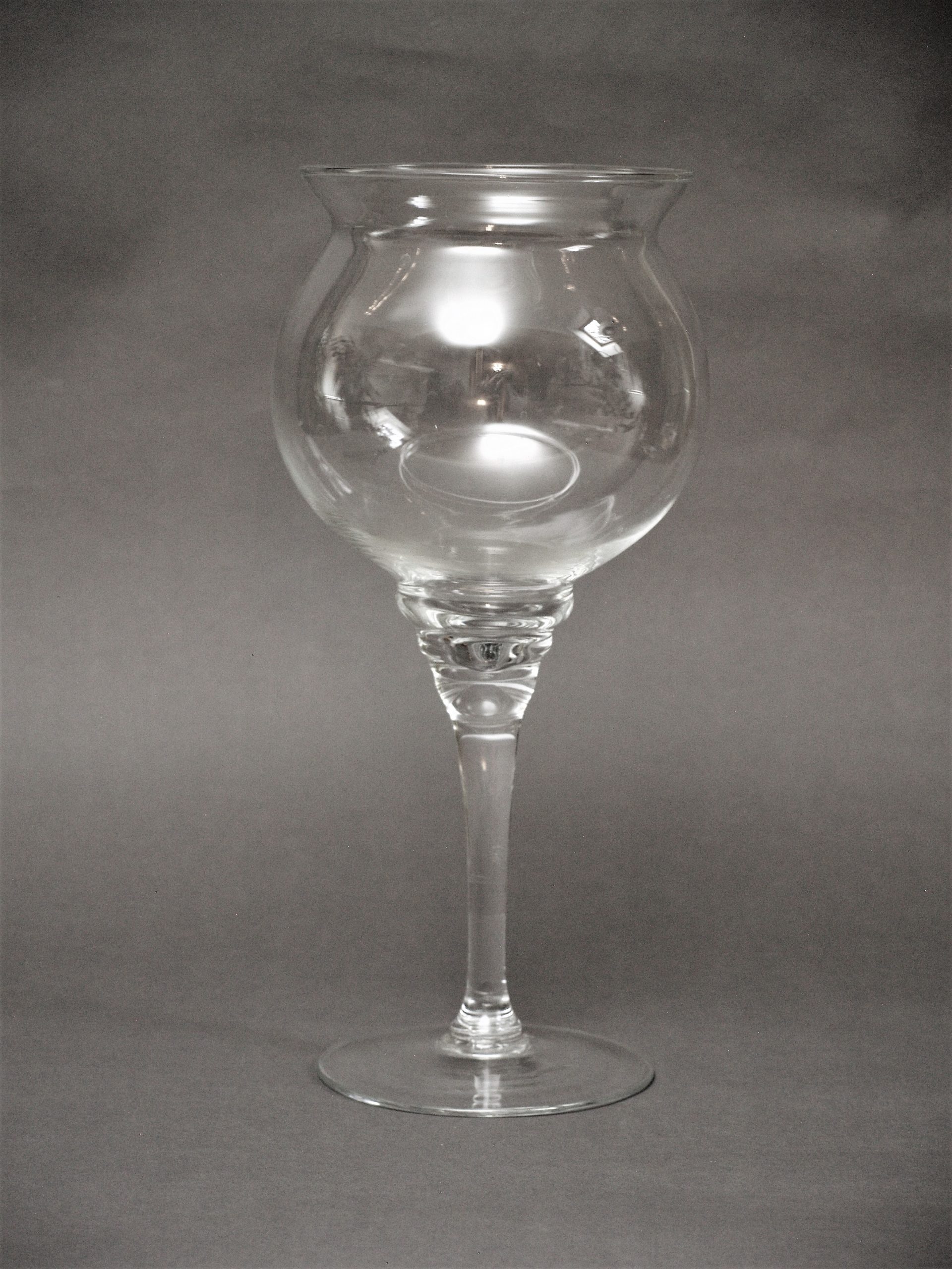Stikla svečturis uz kājas. Izmantojams kā vāze vai saldumu trauks, piemērots ziedu kompozīcijām.