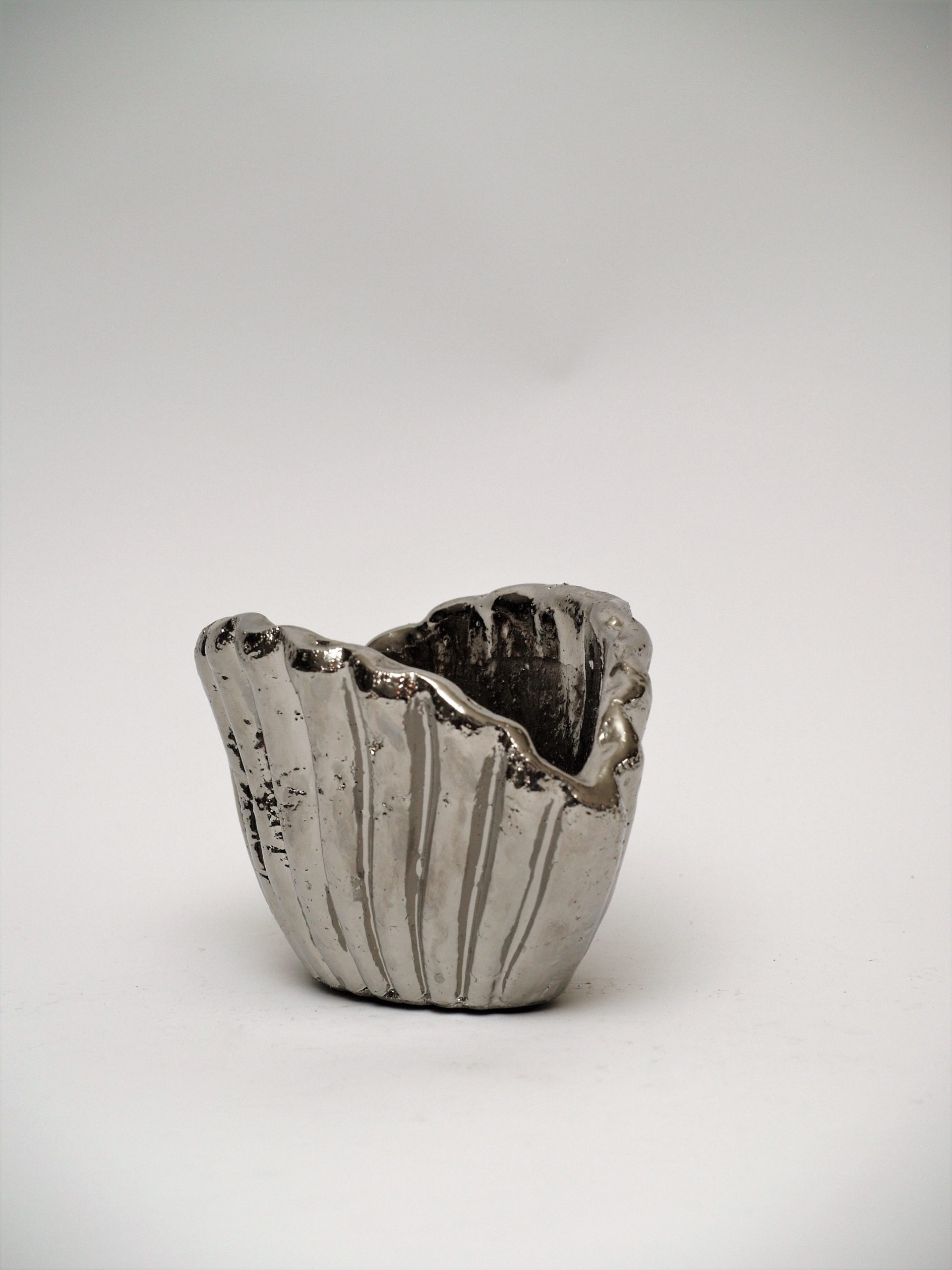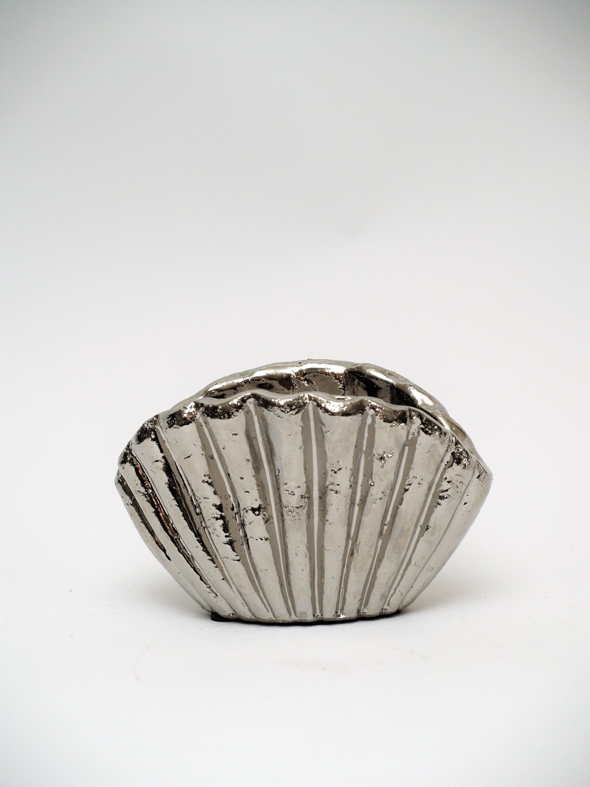Sudraba krāsas vāze gliemežvāka izskatā.