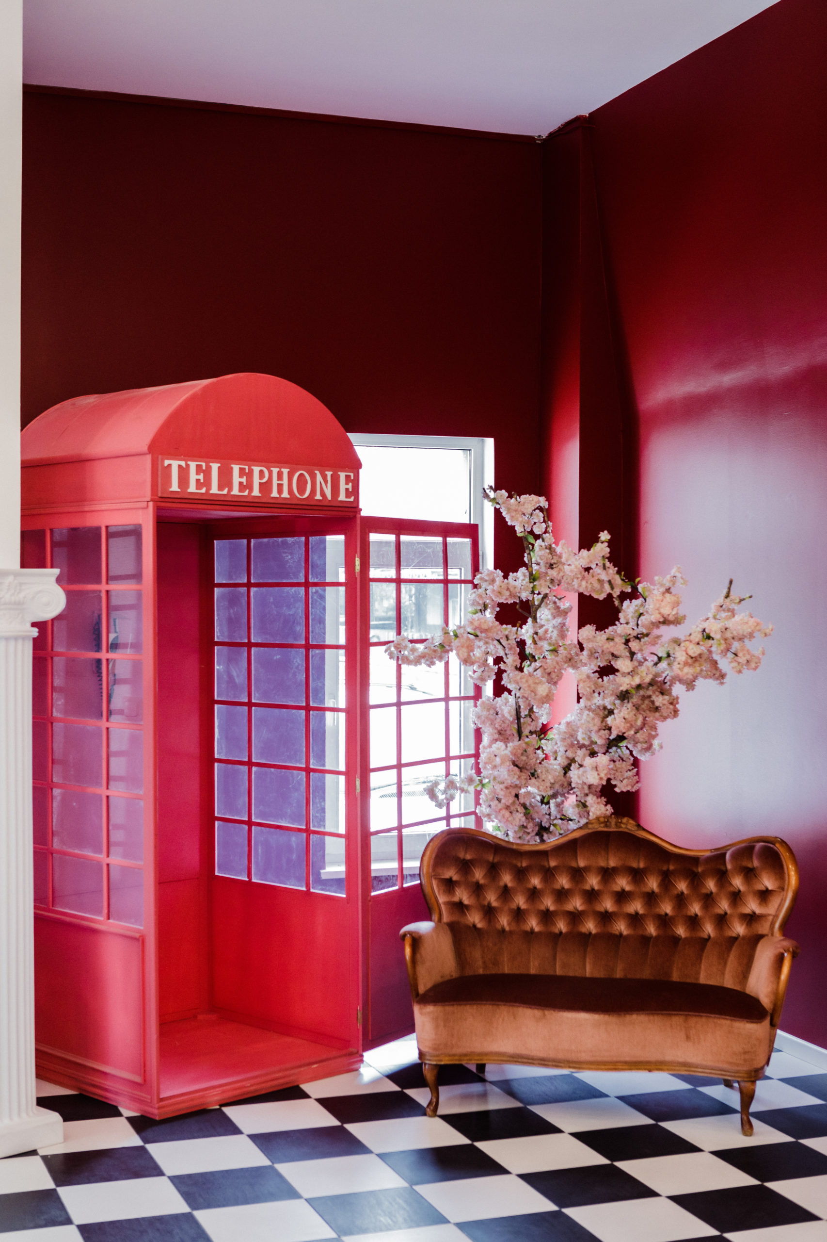 Londonas stila telefonbūdiņa sarkanā krāsā.