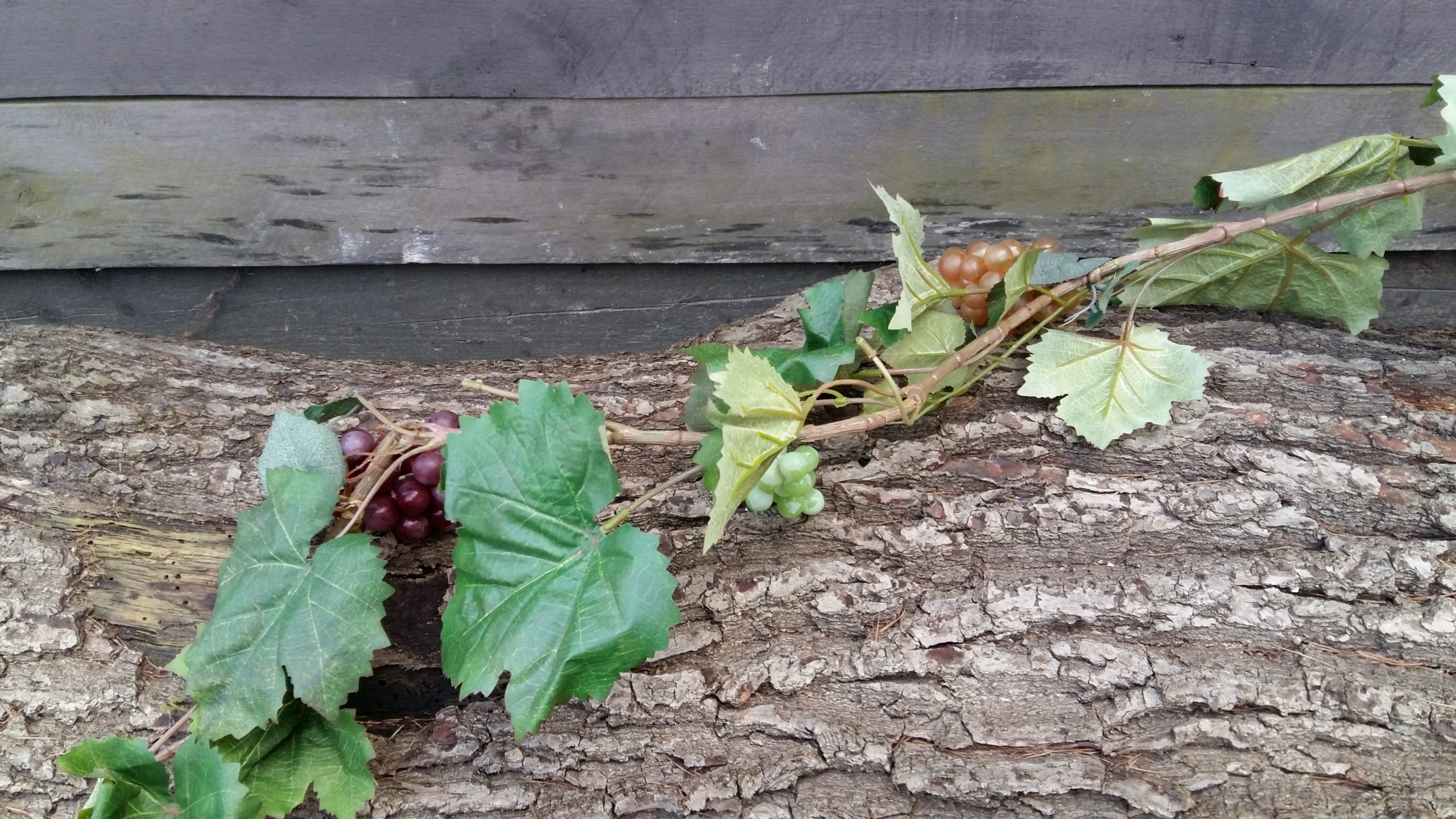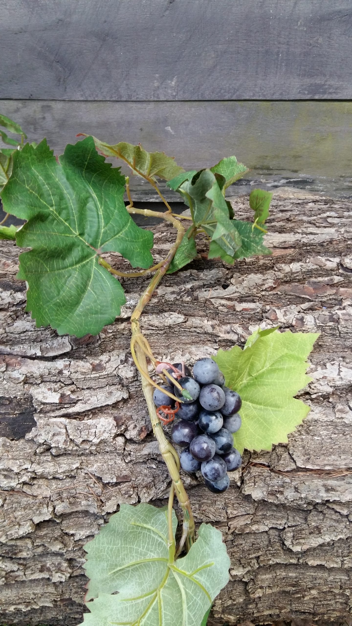 Vīnogu stīgas ar vīnogām. Vīnogas – zaļas un tumšas.