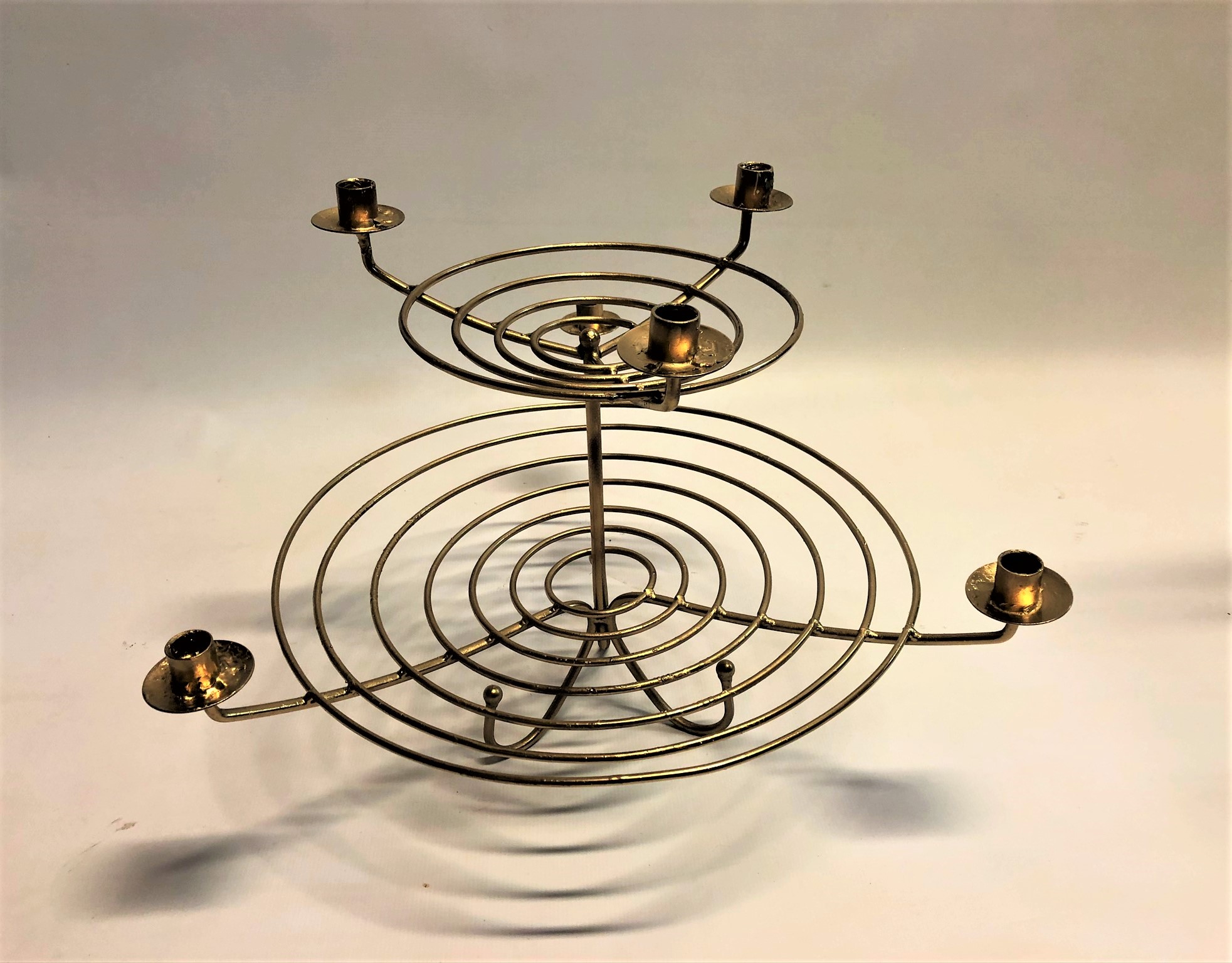 Svečturis – etažieris zelta krāsā garajām svecēm (6 gab.) vai vienkārši dekorāciju izvietošanai.