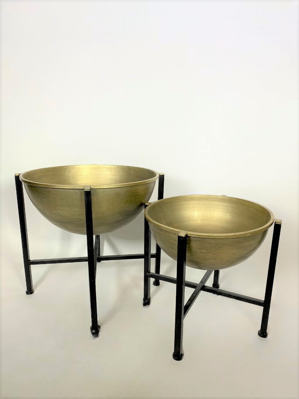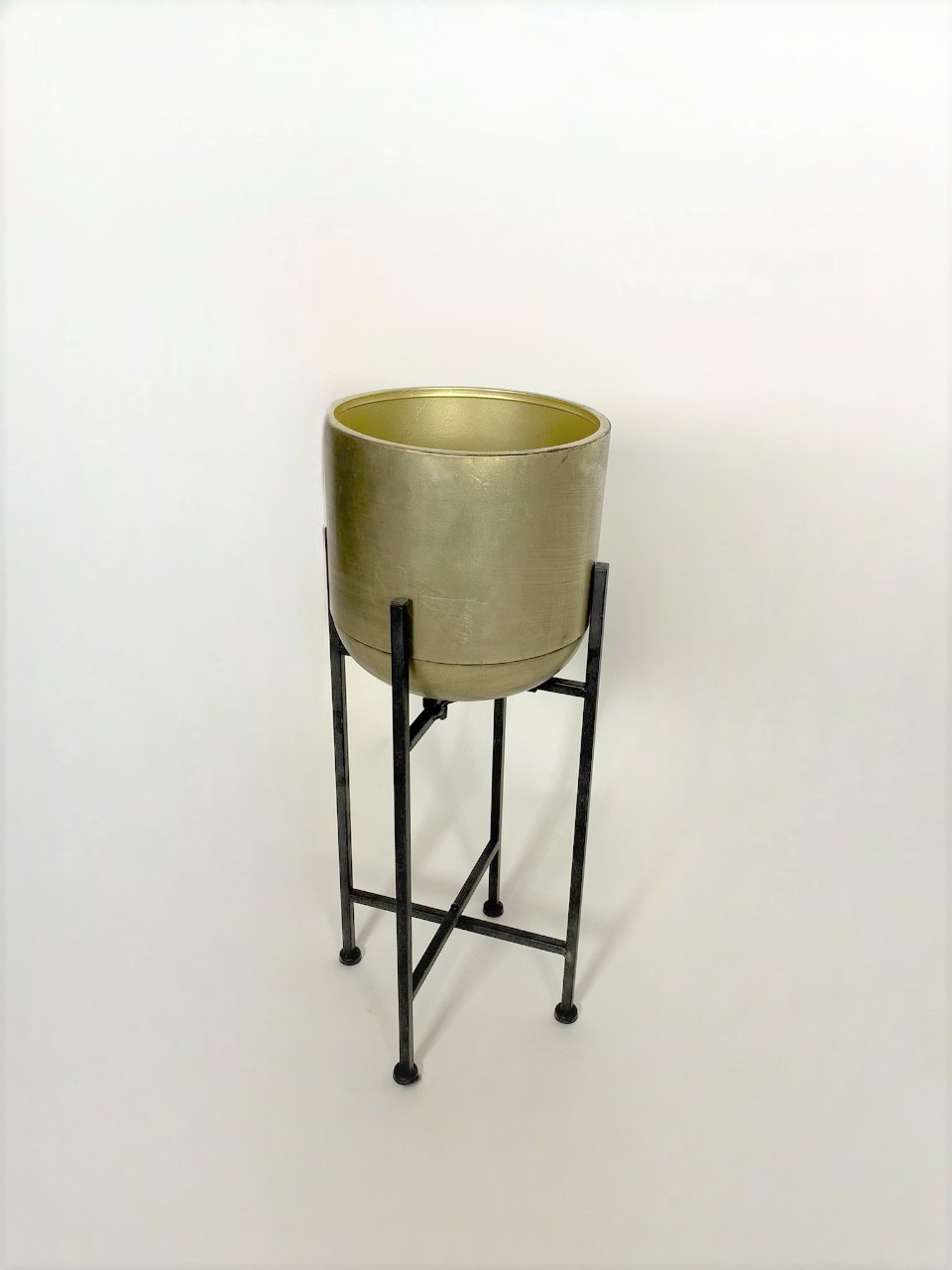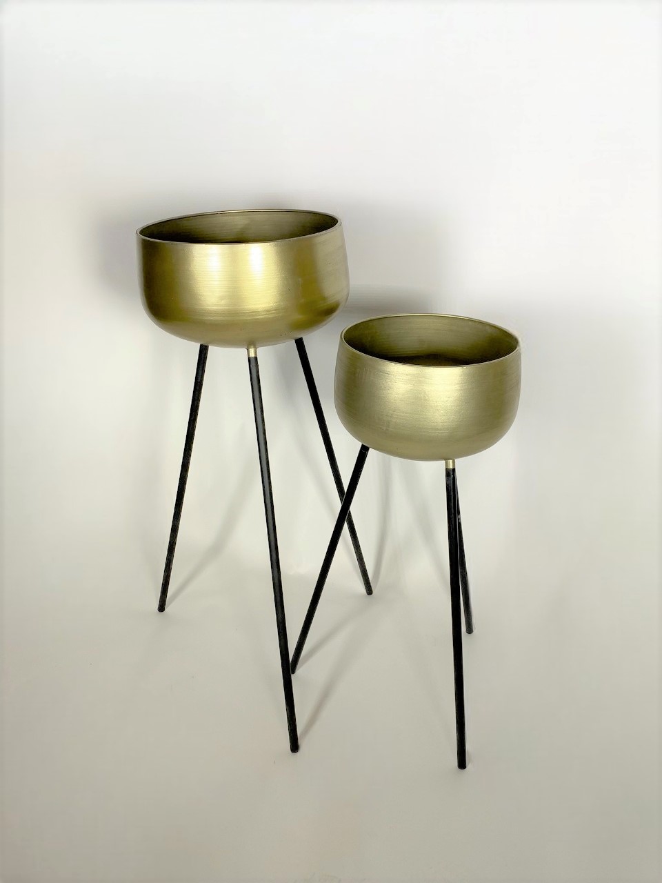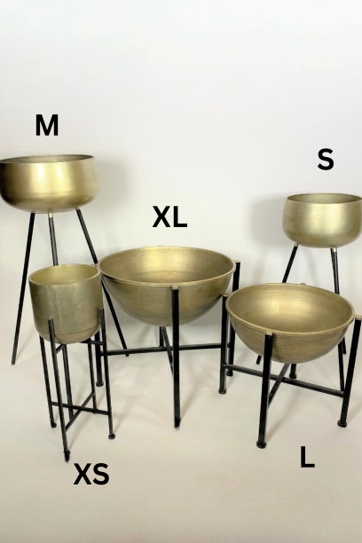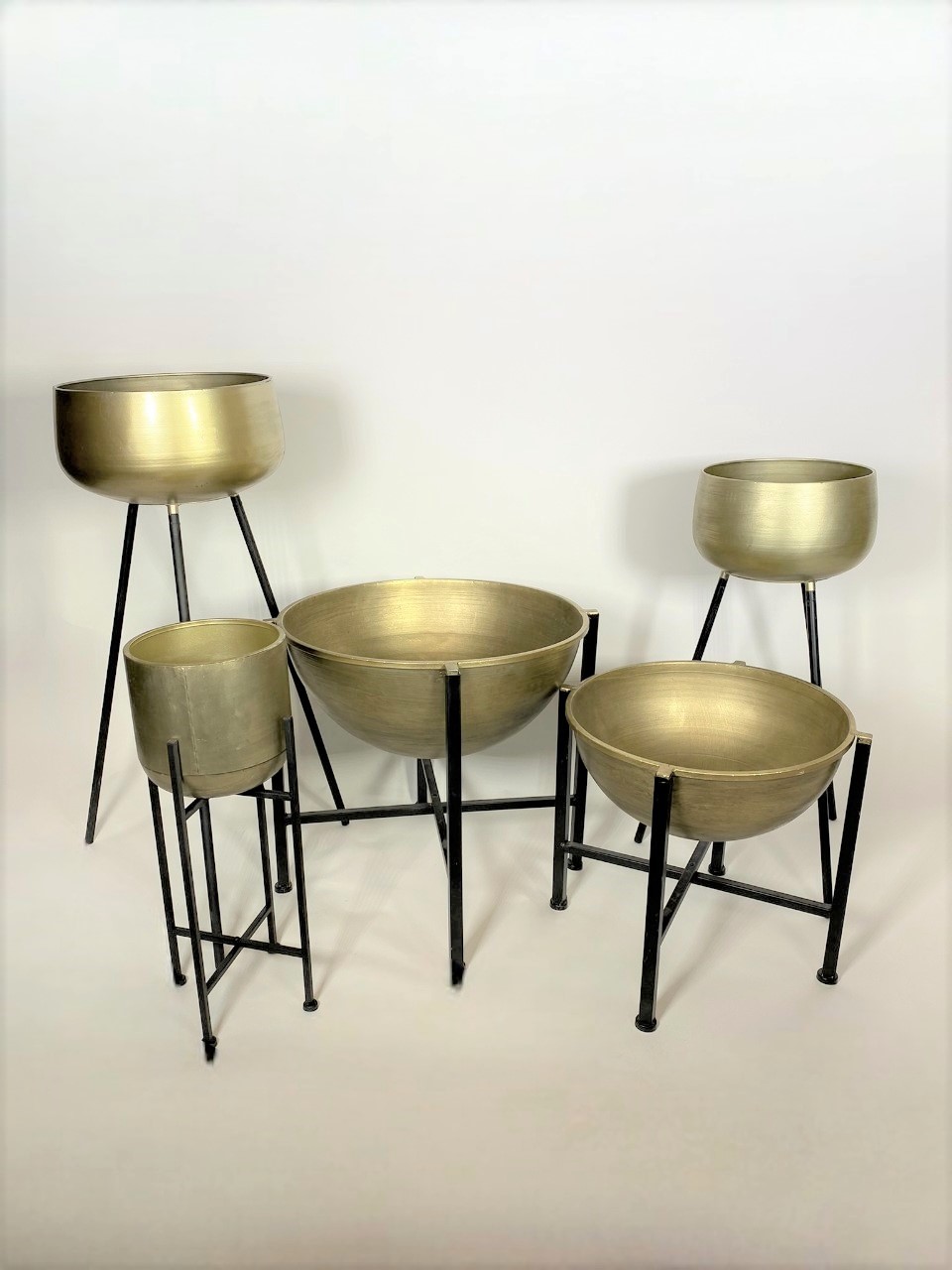Grezni zeltīti podi uz metāla kājām dažādās formās un izmēros.