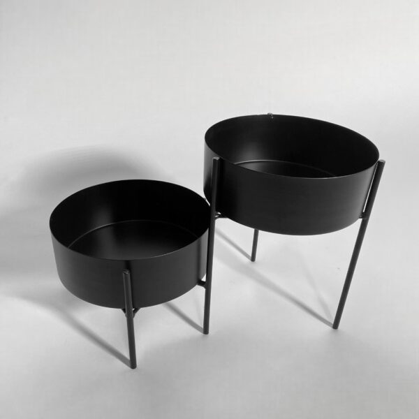 Melns statīvs puķu podiem
